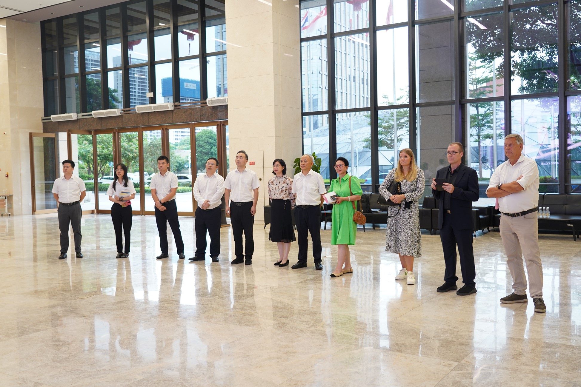 8月22日下午,德国华人华侨联合会主席、德国祥盛有限责任公司董事长李阿平女士一行到中国—东盟经贸(以下简称经贸中心)参观调研,自治区商务厅自贸区协调指导处、广西东博国际经贸投资有限公司相关人员陪同。