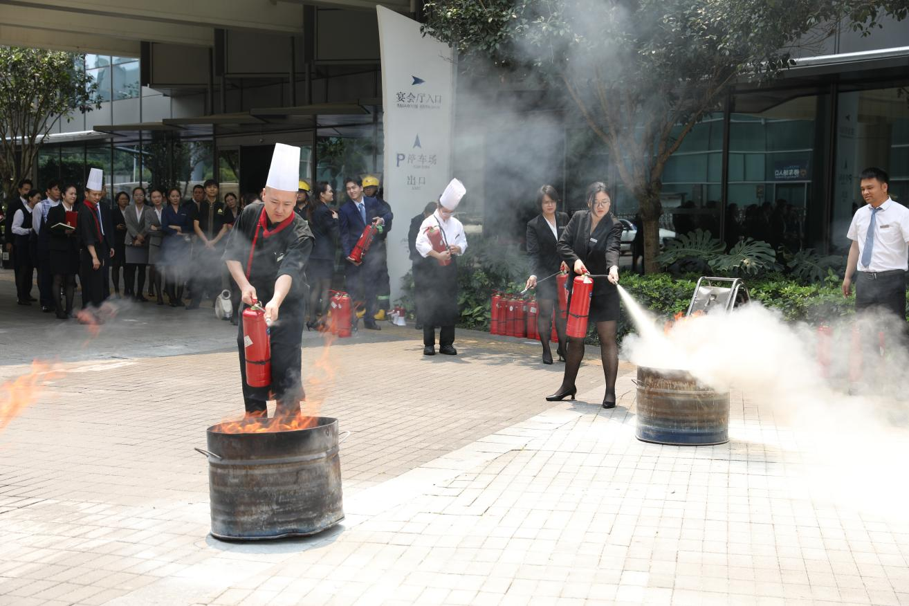 会上,全体员工集中观看了办公场所用电安全及酒店场所消防安全相关警示教育片,并在会后组织开展消防灭火实操演练。